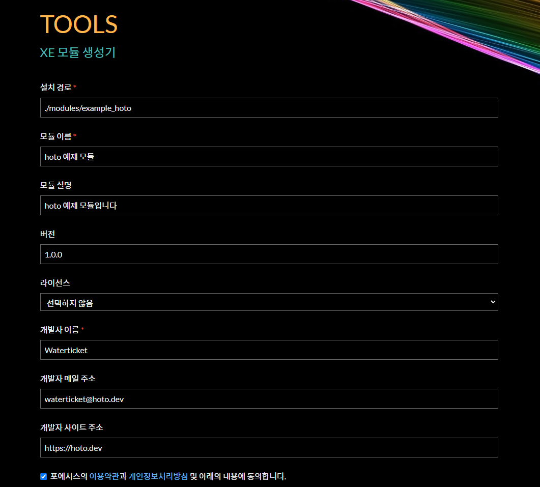 Rhymix 모듈의 토대를 자동으로 생성해주는 사이트이다.